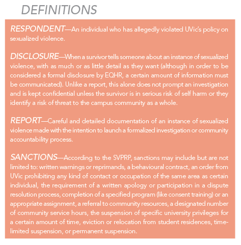 The University of Victoria’s Board of Governors approved the office of Equity and Human Rights (EQHR)’s annual report at their May meeting, which contained the first publicly available peek into the progress of UVic’s Sexualized Violence Prevention and Response Policy (SVPRP) since it was officially adopted in May 2017.