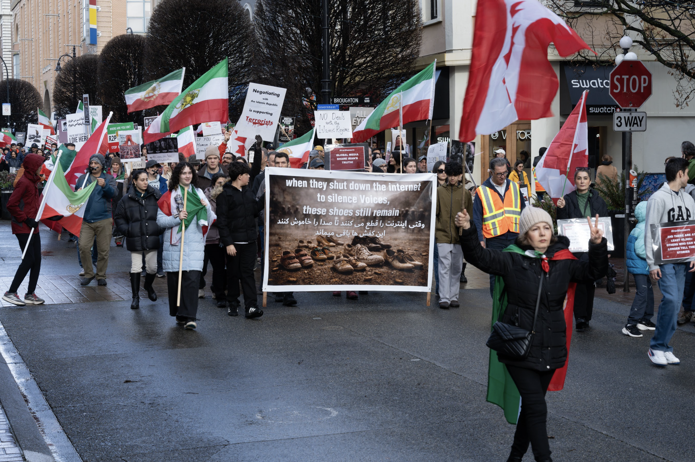 Hundreds marched to the B.C. legislature on Saturday, calling attention to the global silence on mass killings and internet blackouts in Iran