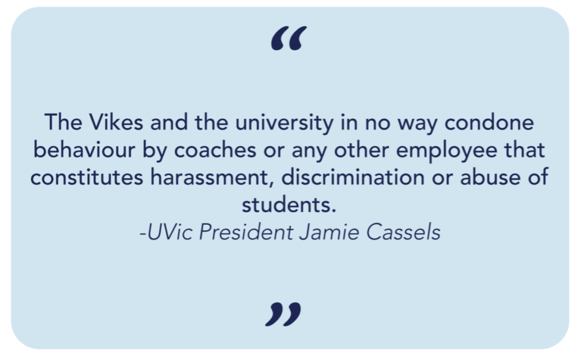 “The Vikes and the university in no way condone behaviour by coaches or any other employee that constitutes harassment, discrimination or abuse of students,” Cassels wrote.