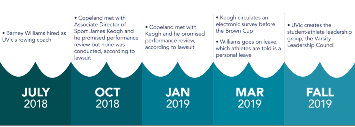 Lily Copeland, one of the three rowers to formally complain, has since filed a lawsuit against UVic and Williams — alleging that UVic delayed addressing her complaints throughout the autumn of 2018 and that both UVic and Williams failed to provide duty of care for their athletes.