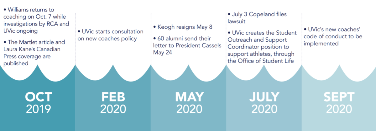 Copeland was one of three athletes to file a formal complaint. According to Copeland’s statement of claim, UVic’s lack of a coaches’ code of conduct made the investigation unreasonably narrow in scope.