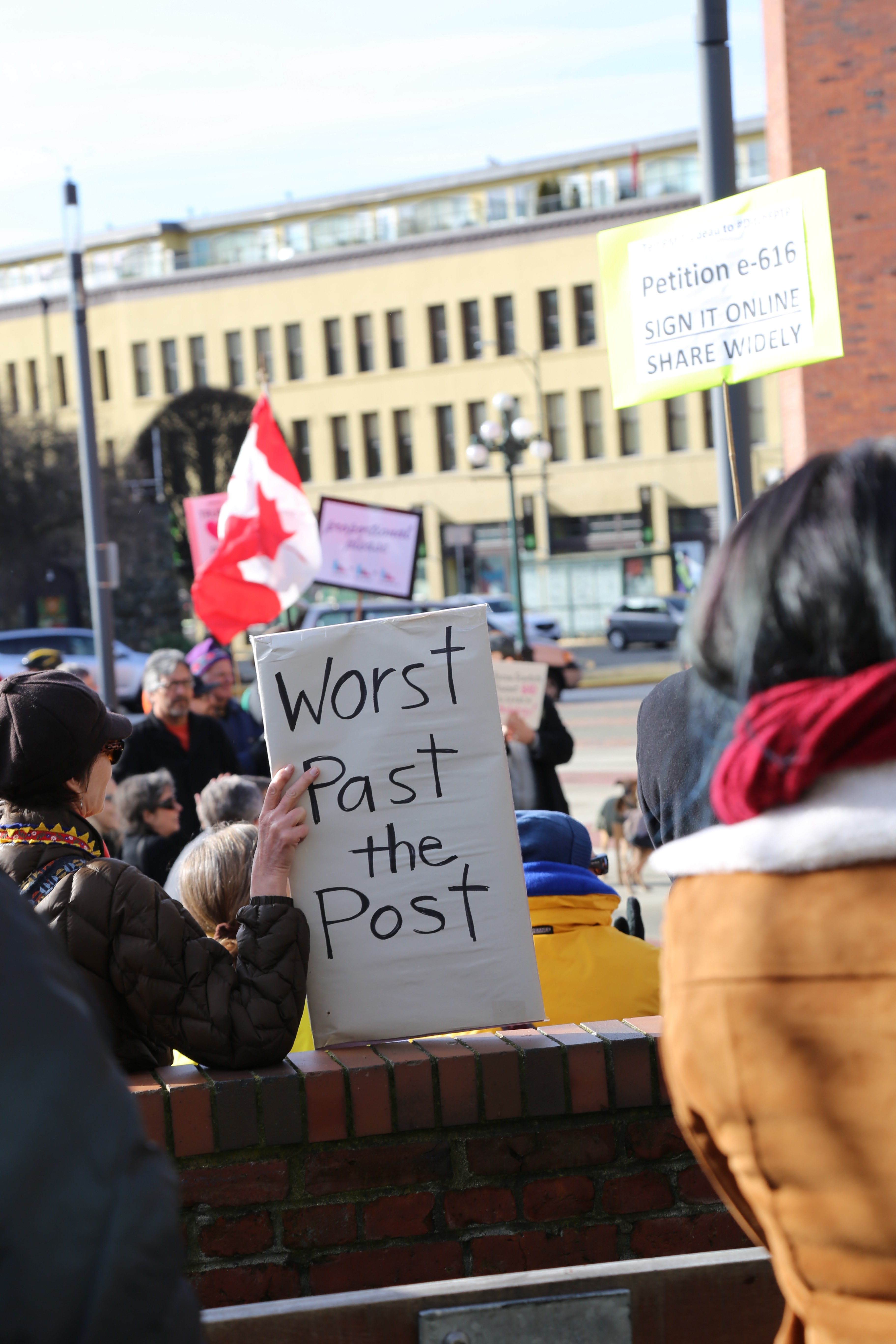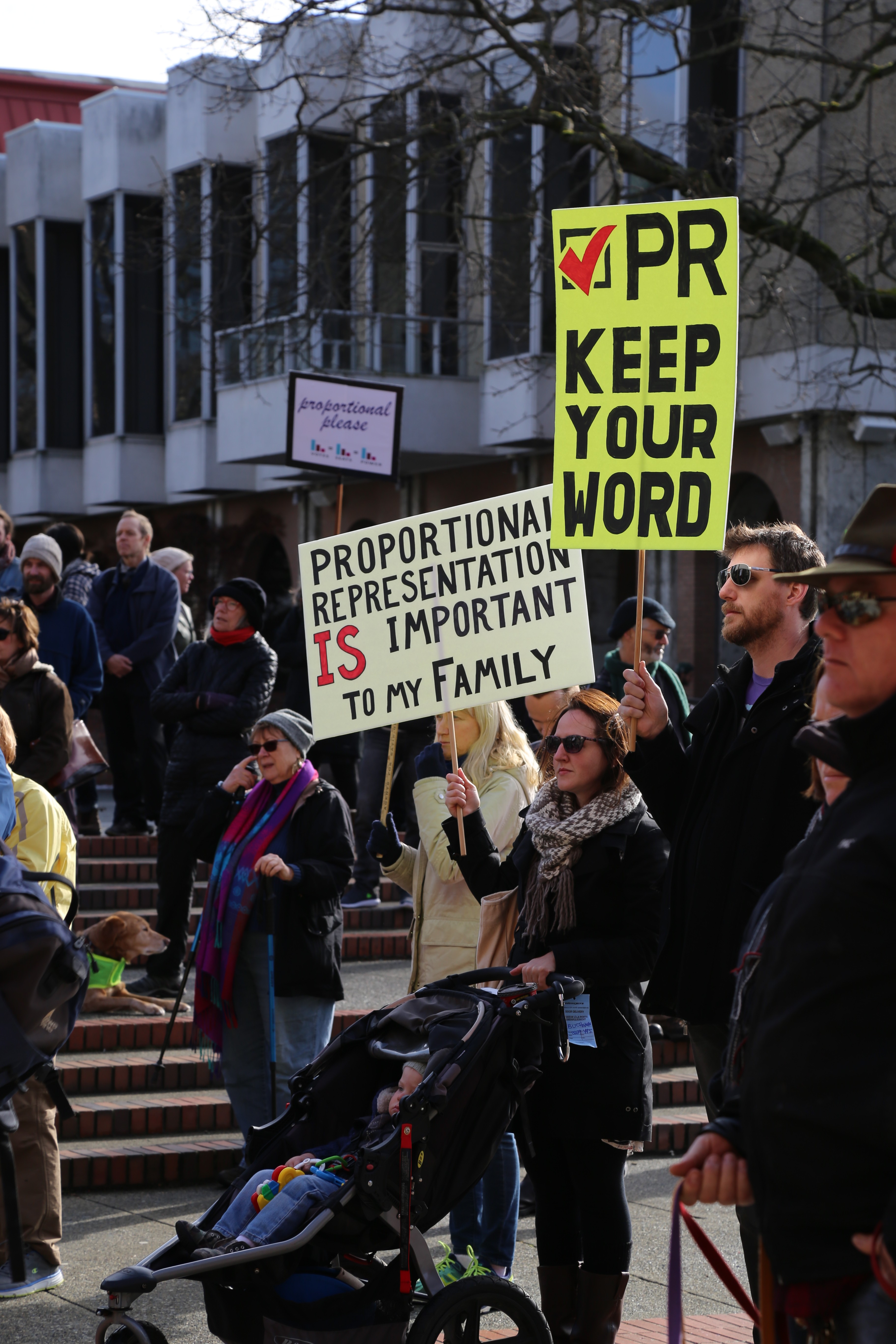 An estimated 250 people showed up to remind Prime Minister Justin Trudeau that he made a promise to them, at a rally in support of electoral reform on Feb. 12.