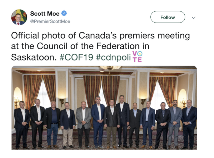 "The Council of Federation, comprised of Canada’s thirteen premiers, posted a picture on Twitter from one of their bi-annual meetings this summer. The picture provokes a rather simple and reasonable…