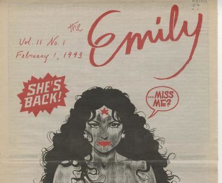The Emily often printed art, poetry, reviews, lists of community resources, highlights from moments in history, and pieces on topical issues through a feminist, gender-focused lens. Some, like “The Emily’s…