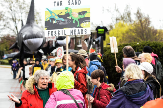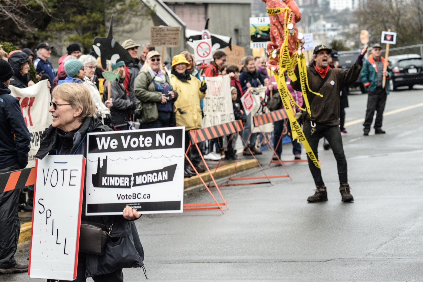 “There’s an amazing quote by Prime Minister Justin Trudeau himself,” Coste said into the megaphone outside the coast guard base. “It’s ‘Politicians give permits, but only communities give permission.’ So just in case he can hear us, what do you think Victoria, does Kinder Morgan have our permission?”