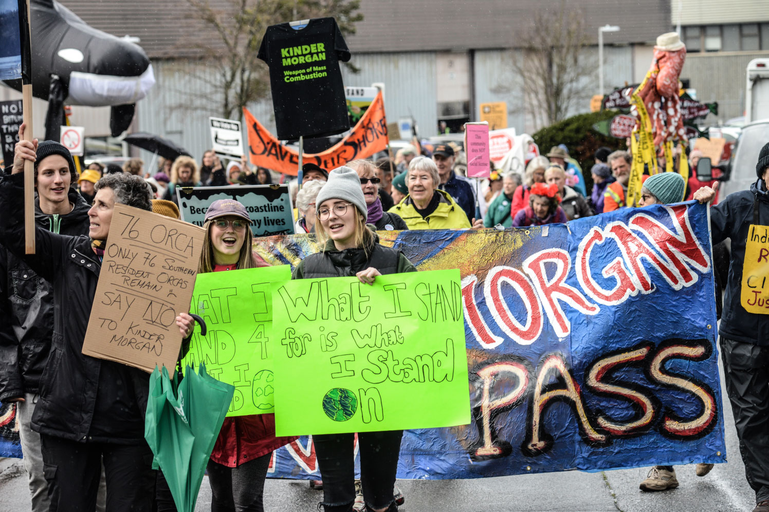 “I want to stand up for what I believe in,” said Kelly Barbin, a concerned mother of three and resident of the Salish Sea who had braved the rain for the welcome party.