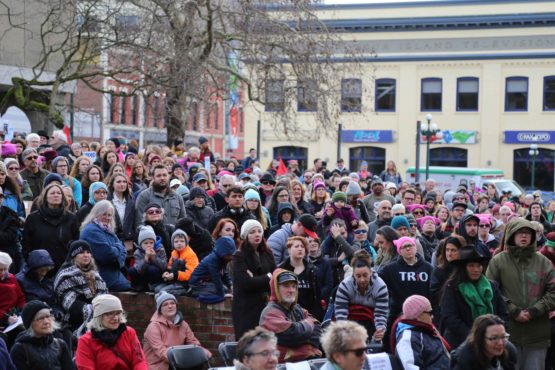 The meeting is loud and fast-paced. Things are falling into place and the room is buzzing. “It’ll be activist women speaking their minds through song and dance,” says Barbara Mitchell-Pollock, co-organizer. The festival at Centennial Square will run from 3:30 p.m.–7:00 p.m., and will feature singers, dancers, and poets, she tells the group. There will also be a sign-language interpreter and Brianna Dick from the Songhees Nation will be opening the program. She will be “honouring the land and welcoming people to the land,” says Mitchell-Pollock.