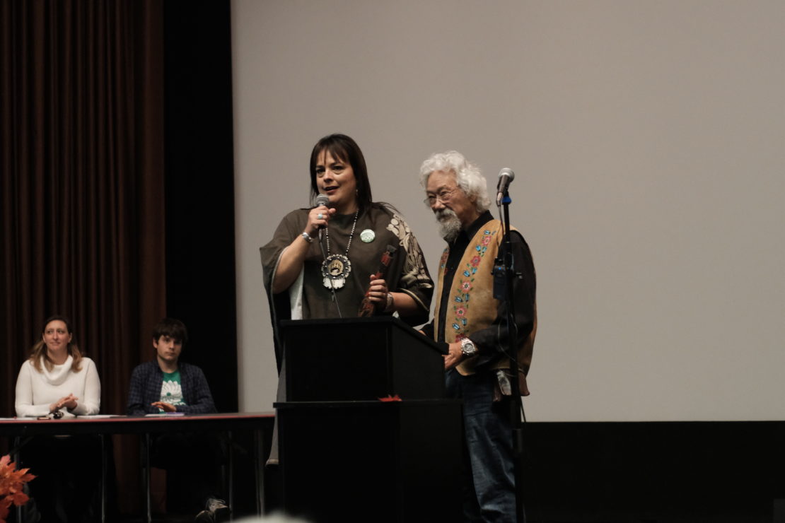 Many also attended to hear from David Suzuki, one of Canada’s leading figures in environmental justice for over 50 years. While Suzuki was announced as the main speaker of the event, all four speakers were met with excited applause and drumming from Lekwungen elders in the front row.