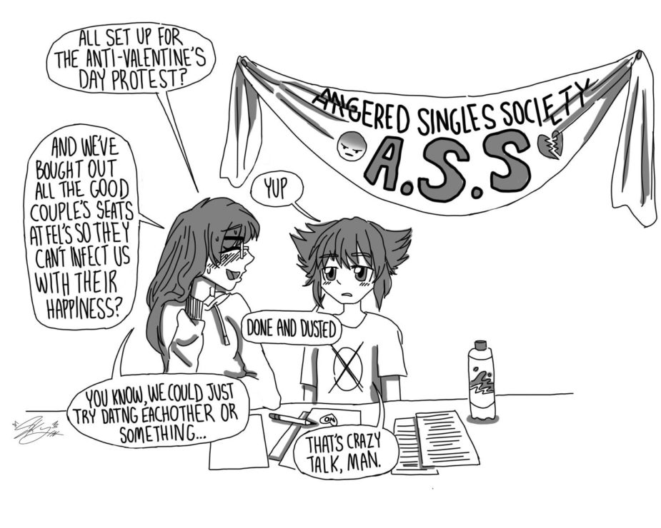 At time of writing, Valentine’s Day has very nearly unleashed itself upon millions of unsuspecting Hallmark recipients, and by the date of your reading, countless more chocolates will have been received, emergency backup Tinder dates left at dubious conclusions, and awkward gifts from overly-affectionate co-workers politely rejected. Indeed, love is in the air, or if not love, something painted-up to look like it. For still other folk, a few gestures of warmth will quietly mark the passing of another celebration of one another’s treasured company. Yet I do not presume to waste any more of this publication’s ink on the latter sort of person. I am set today to write of those whom Valentine’s Day has forgotten. For we cursed souls remain unattached through no sure fault of our own, our stomachs turning to endure the adoring couples. Yet, I foresee a revolution.
