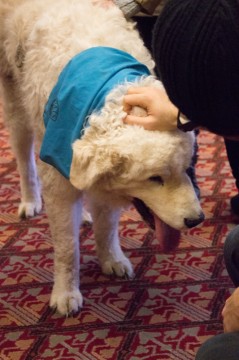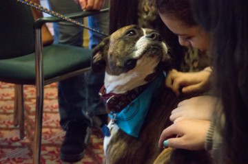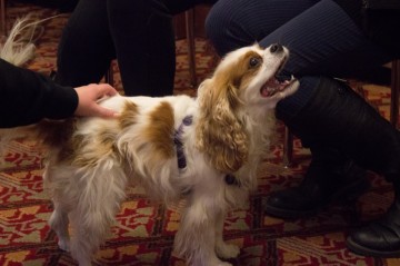 Canine companions comfort a contiguous queue of cram-committed scholars in the Cadboro Commons building. The pups visited the Commons as part of UVic’s De-Stress Fest — an assortment of stress-releasing events that took place on campus Nov. 27–29. Students flocked to the Campus View Room on Nov. 28 for two hours of doggy playtime. The dogs came from various locations, including the Pacific Animal Therapy Society, Broken Promises Rescue and Citizen Canine Dog Owners Association.