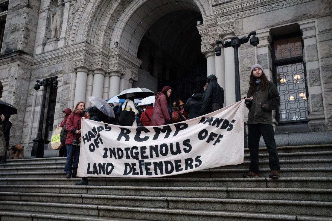 At the B.C. Legislature on Feb. 11, the story of the day was supposed to be the Speech from the Throne. Instead, all 16 entrances of the building were blocked by Indigenous land defenders and allies — some of whom had been sleeping on the front steps for six days.