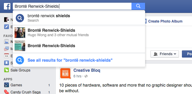 - Searching “Brontë Renwick-Shields” on Facebook yields two results, the second of which still has a Unite UVic profile and cover photo. Screenshot by Niusha Derakhshan