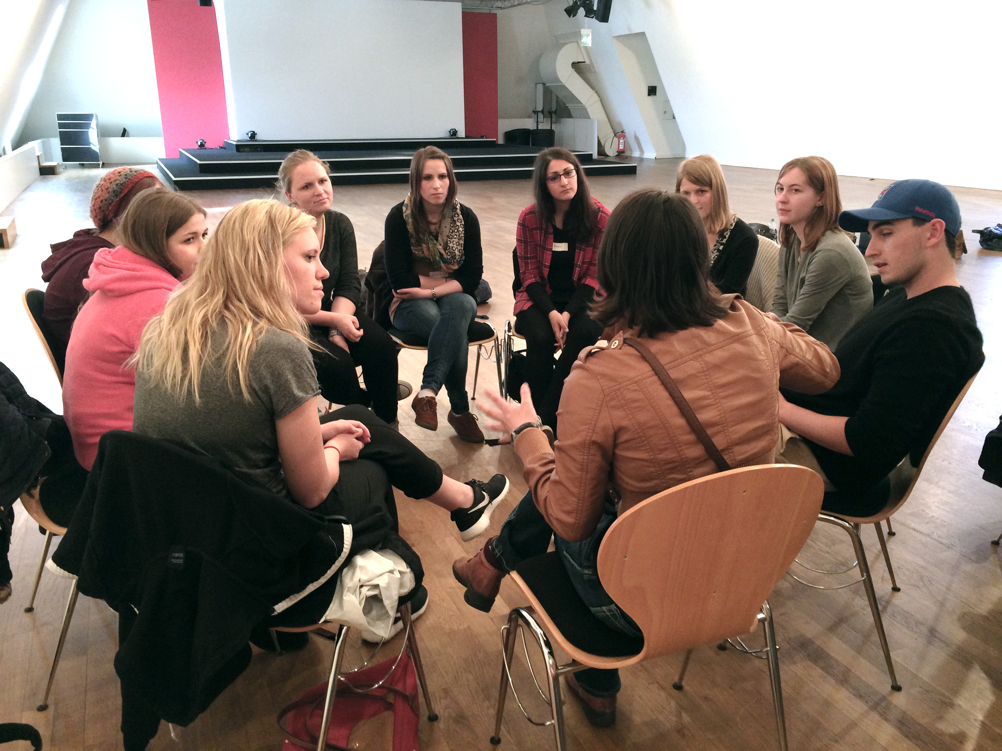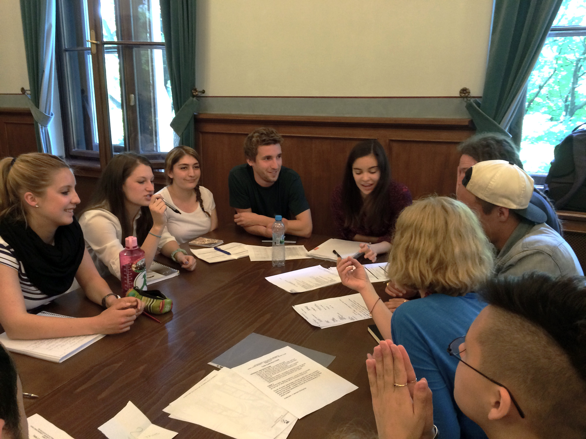 - Class session at the University of Vienna discussing what it means to be an I-witness. Photo provided by Helga Thorson