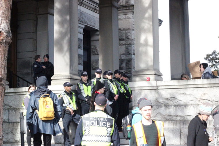 At one point in the morning, a staff member from the legislature pushed through a crowd of minors. Another person trying to enter the Legislature ended up pushing a demonstrator onto the ground. Victoria PD is investigating after a few government staff reported minor injuries.