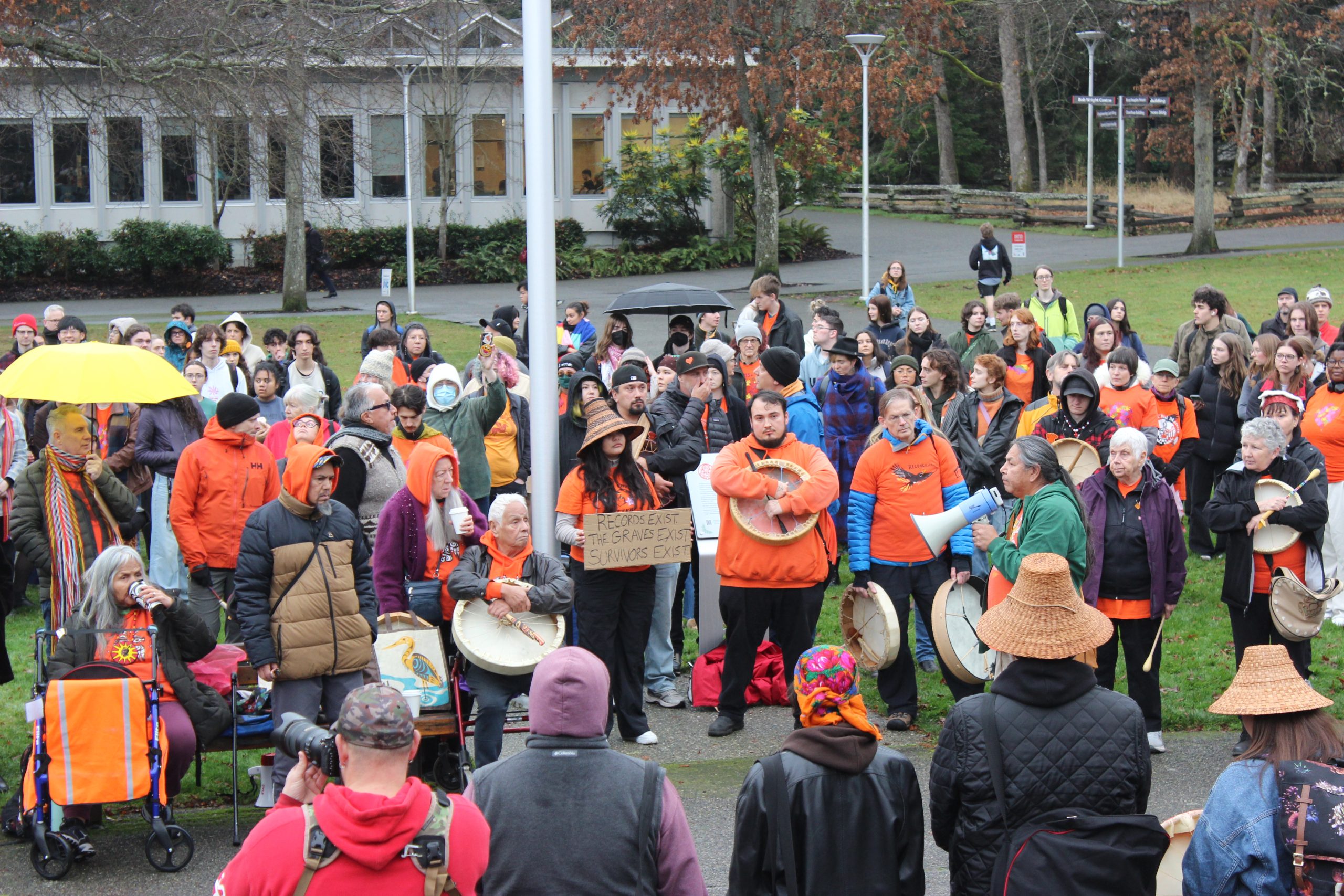 Victoria News credited Hayalthkin’geme, Carey Newman (Nulis) as the organizer of the gathering. However, in an interview with the Martlet, Newman said the term “organizer” may be generous, and that he worked alongside UVic faculty members Ry Moran and waaseyaa’sin Christine Sy to bring attention to the unsanctioned event.
