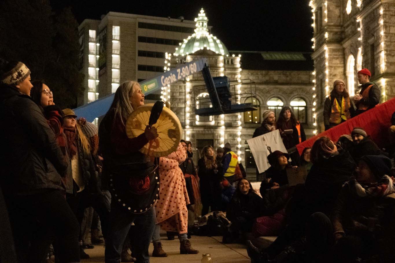 The injunction is targeted towards groups blocking doors and preventing staff from doing their work. On Feb. 24, the Indigenous youth tested the injunction’s bounds, but didn’t break it, by holding space on the front steps in front of the ceremonial entrance. They intend to stay until Premier John Horgan meets with the Wet’suwet’en hereditary chiefs.
