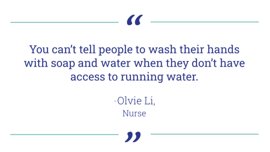 “You can’t tell people to wash their hands with soap and water when they don’t have access to running water.”