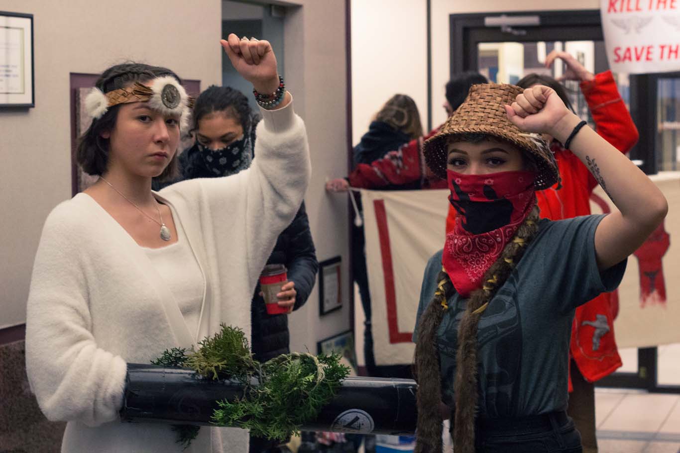 “[We just] grabbed open that door and went through,” said Aya Clappis, who is from Huu-ay-aht First Nation of the Nuu-chah-nulth Nation and Firekeeper of the UVic Native Students Union, when asked about how the group gained access to the building despite security presence.