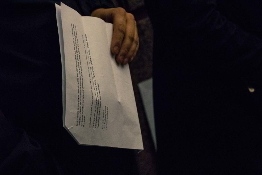 The protesters hailed from a multitude of backgrounds. Nuu-chah-nulth, Tla’amin, Stó:lō, Namgis, Heiltsuk, Lil’wat, Xwlemi, Qayqayt, Lue Chogh Tue, Shishalh and Sḵwx̱wú7mesh Nations were all represented at the scene.