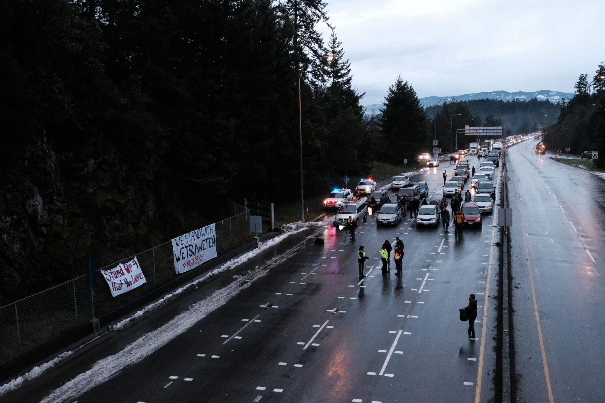 On the roads, traffic backed up to the Highway 17 intersection in Sidney. Central Saanich Police said the demonstration was a “major traffic disruption,” and advised drivers to avoid the area.