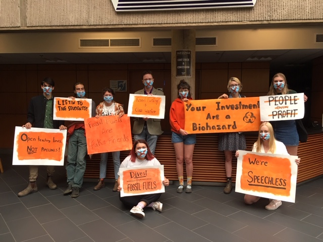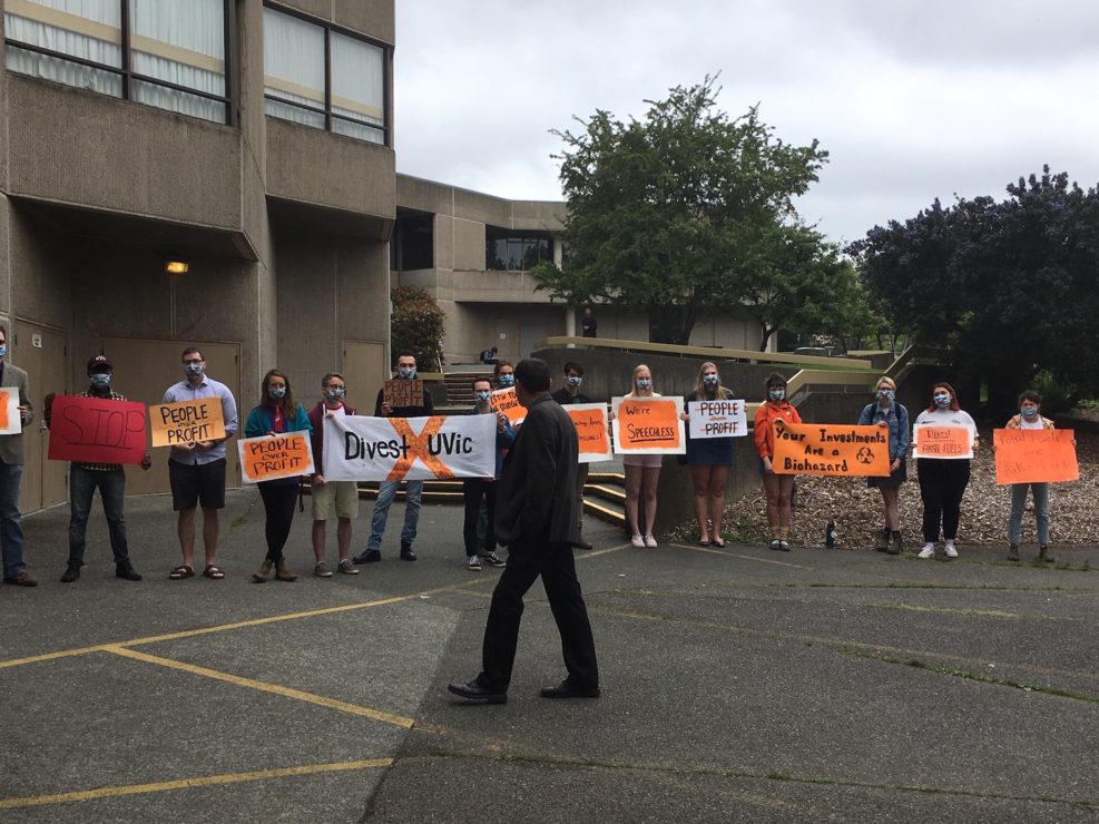 Over a dozen students were there to protest the university’s continued investments in fossil fuels. Students, including many members of the student group Divest UVic, filed a 24-page report to the BoG requesting UVic divest from fossil fuels within the next three years, and a response was anticipated to be issued by the board at the meeting.