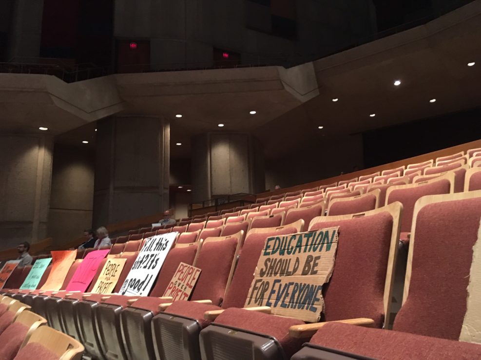 The March meeting was brought to an early conclusion due to the raucous crowd, and the board reconvened shortly after in a closed meeting at the Michael Williams building to pass the budget. In protest of the board’s response, students staged an overnight sit-in at the Senate Chambers.