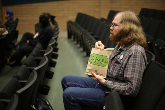 Many of those in the audience were connected to the election in some way, like Dirk Slot, candidate for UVSS Director of Student Affairs. Photo by Belle White, Photo Editor