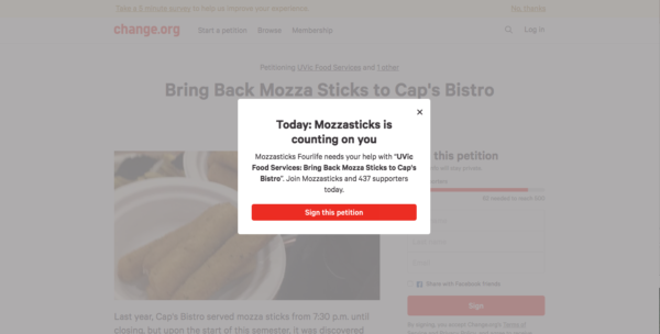A petition was quickly struck up, which received almost 500 signatures. Students also emailed UVic Food Services by the dozens.