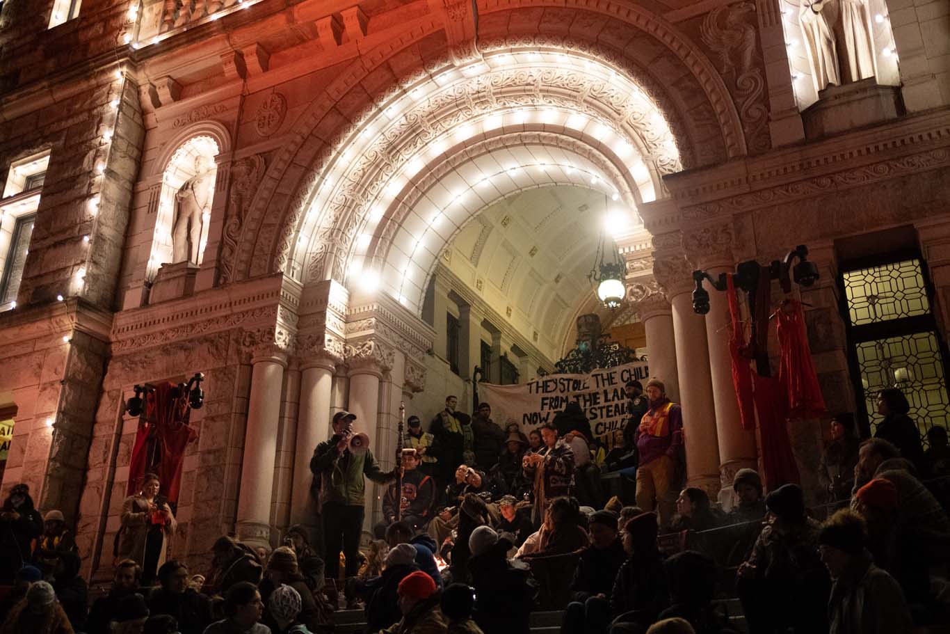 The B.C. Legislative building was awash with red on the evening of Feb. 24 as about 400 Indigenous youth and allies returned to the steps of the B.C. Legislature, in…