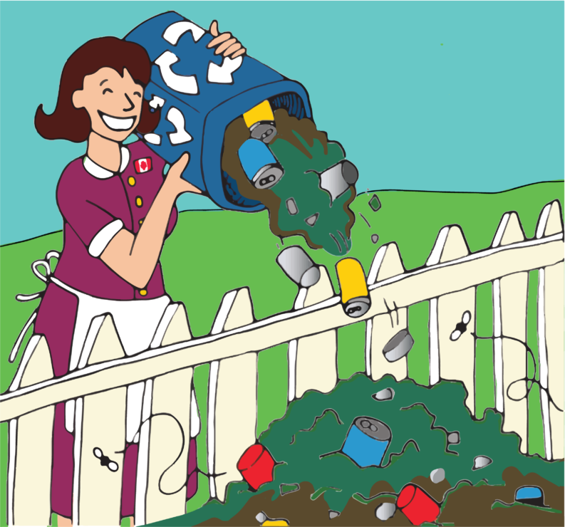 Even if the recycled material is acceptable, many people toss dirty containers into the bin, unaware of the fact that even a couple teaspoons of peanut butter can cause an entire tonne of otherwise recyclable material to be sent to a landfill.