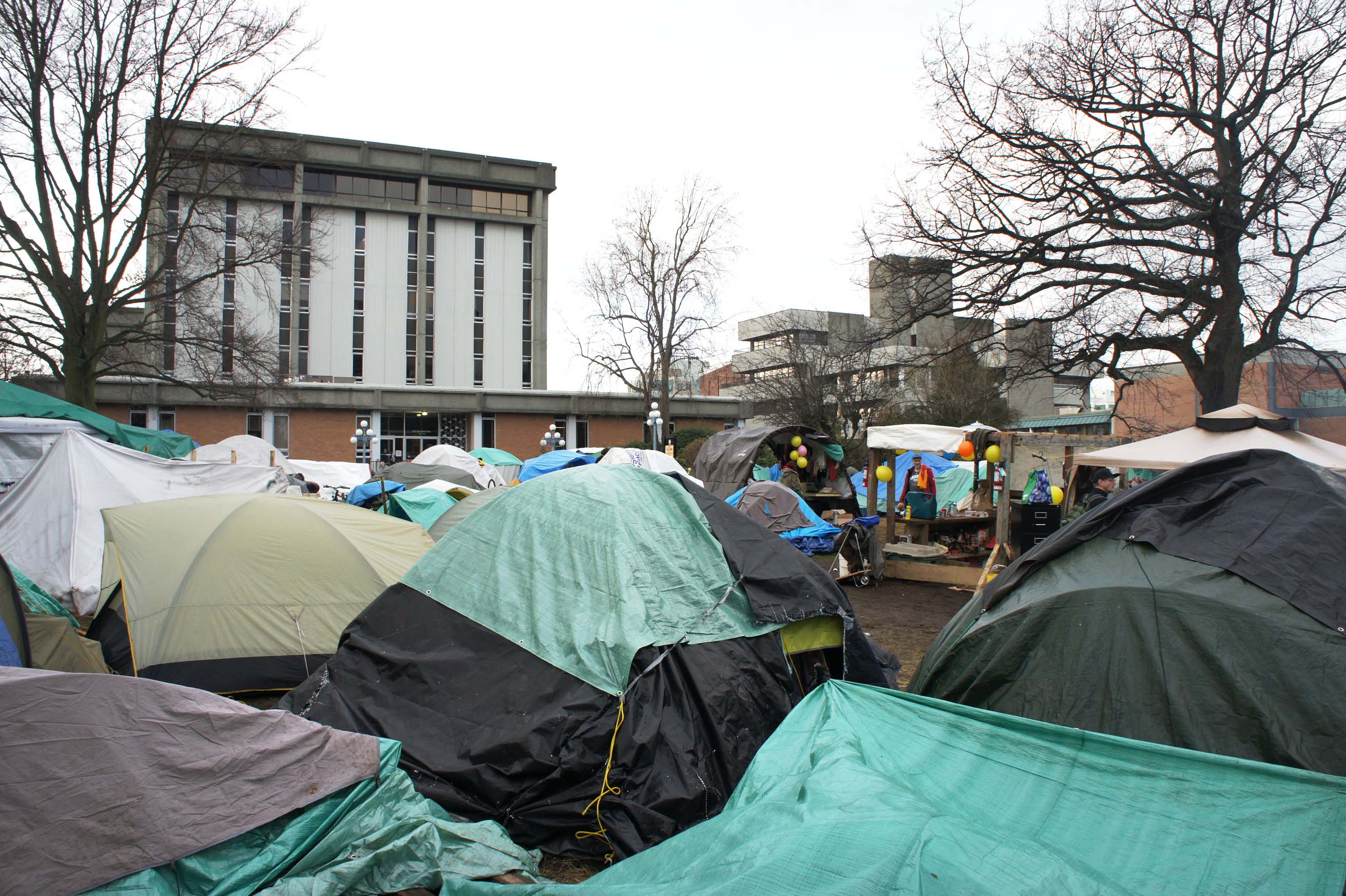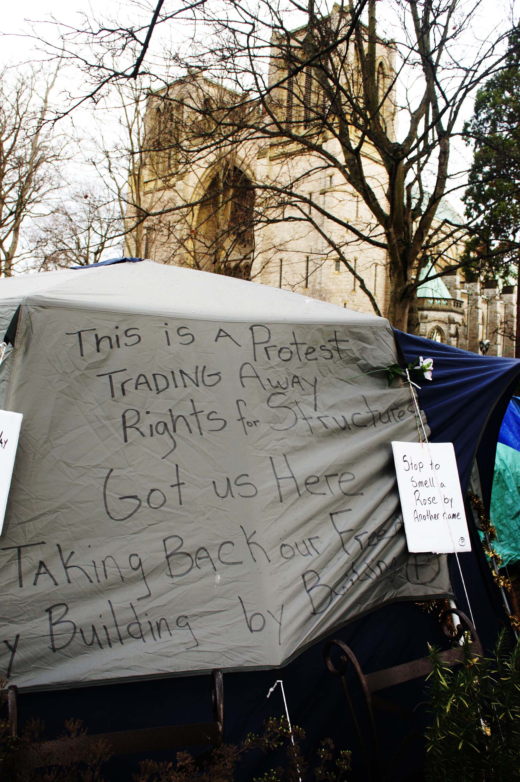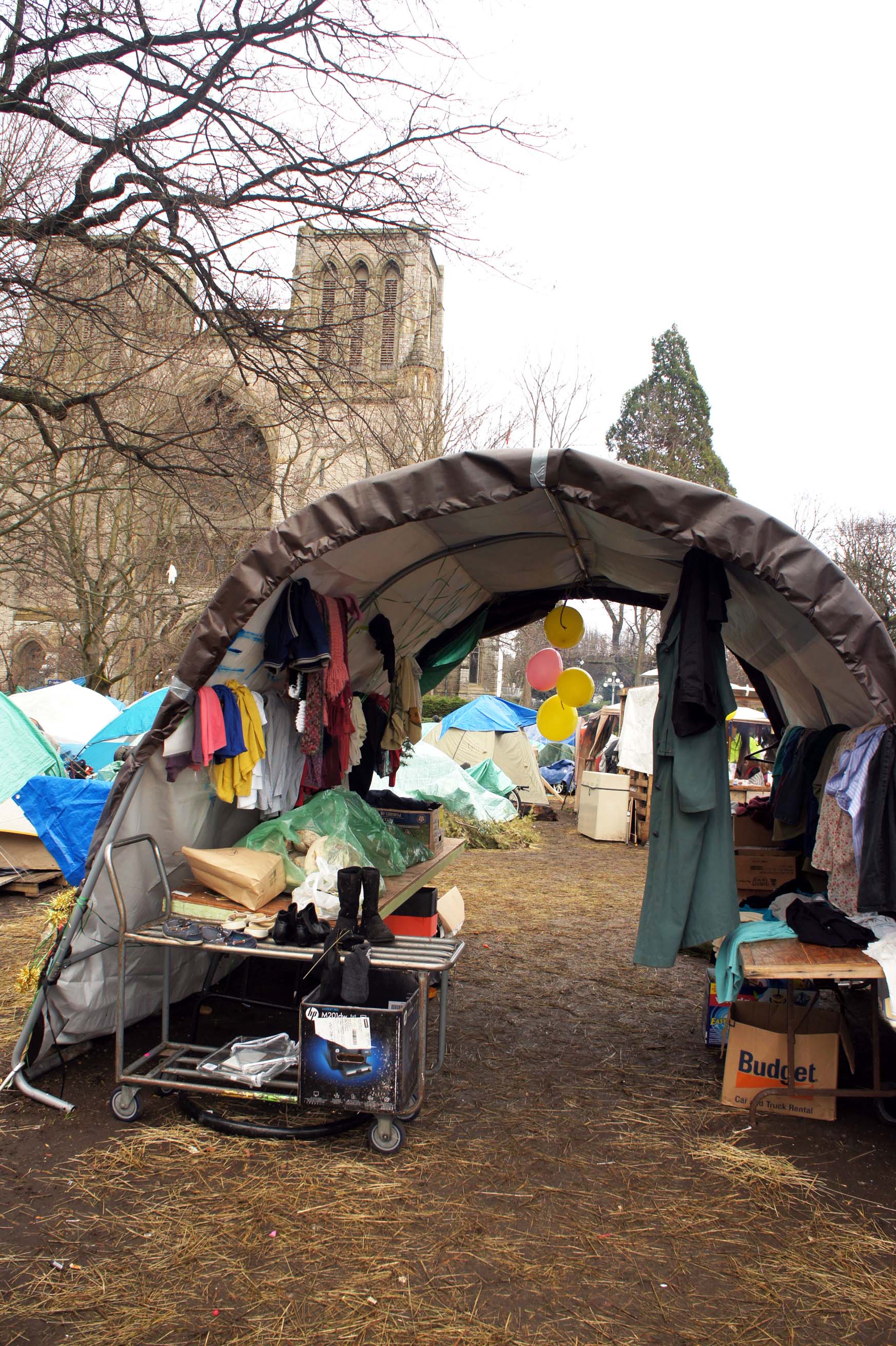 There are times in a city when you find yourself removed into another world. Yet, never has this experience been so accentuated as when two curious reporters visited the self-proclaimed Super InTent City in the heart of downtown Victoria. Stepping through the break in the hedge which neatly encompasses the once-empty lot behind the Courthouse, the moral firmament of Church of Christ Anglican looming at our backs, we found ourselves in a village green of old.
