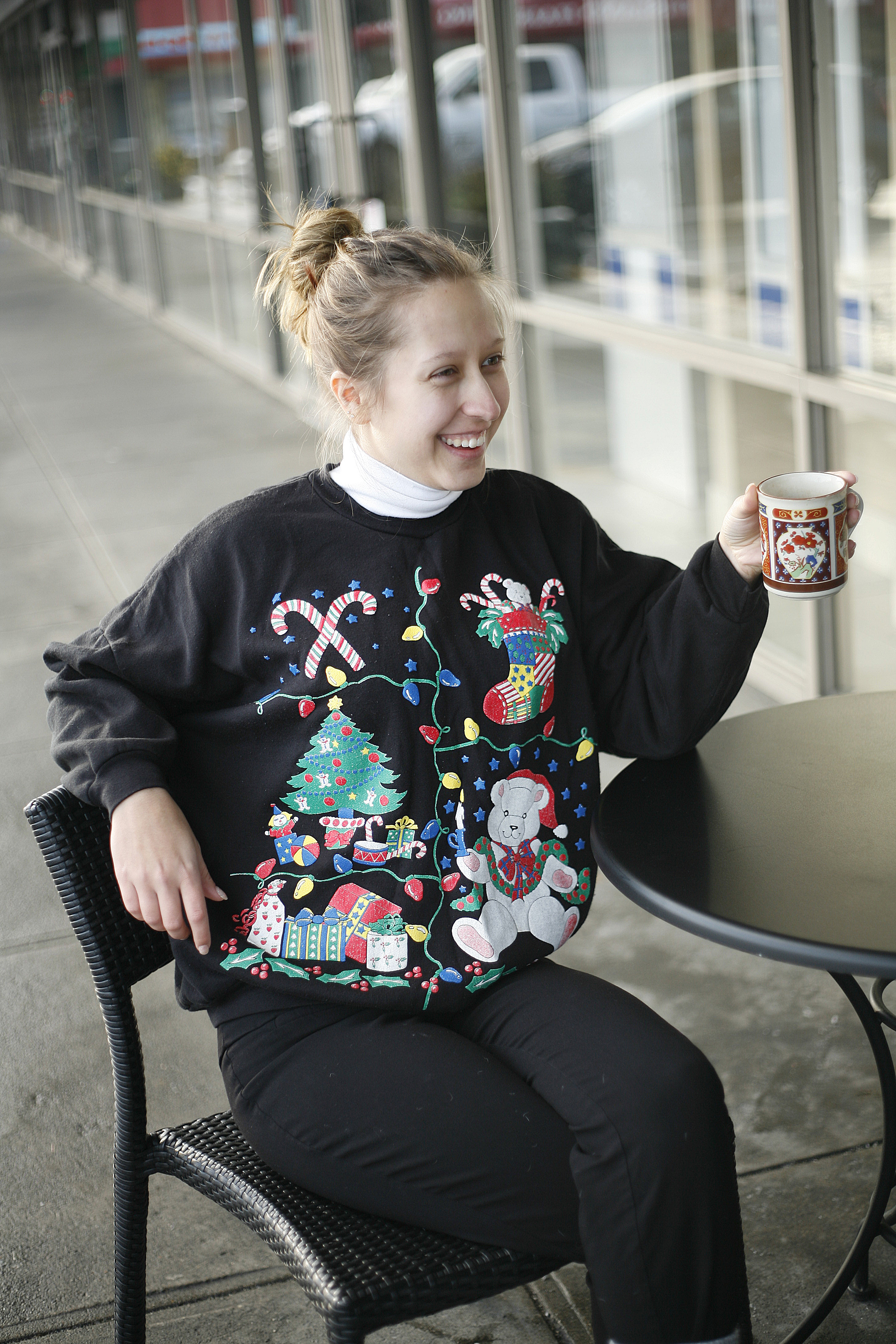 - This busy, ’70s-inspired sweater is a true statement piece. Versatile in that it can be worn after the Christmas as well. A definite must-have for the more non-committal Christmas sweater wearer.