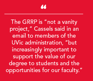 In an email to members of the UVic administration obtained by the Martlet through a Freedom of Information request, Cassels stressed that the GRRP is “not a vanity project, but increasingly important to support the value of our degree to students and the opportunities for our faculty.”