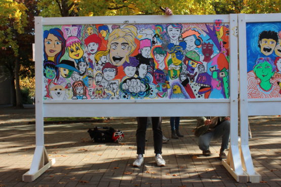 On the final day, the mural was rolled out in front of the MacPherson Library, and anyone walking by could join in on the activities.