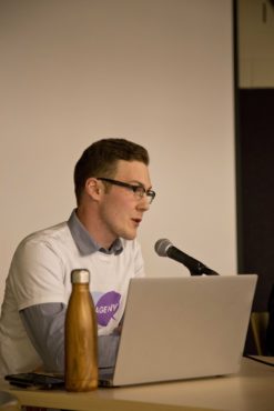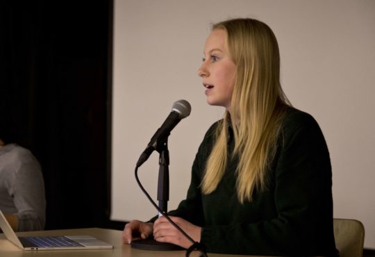 Kerr spoke about the progress seen on UVSS campaigns in the last year — including the new summer U-Pass, the province’s very recent removal of interest from student loans and their creation of a 24-hour mental health helpline, and the continued collaboration with UVic on Rent With Rights, a campaign that promotes affordable housing for students.