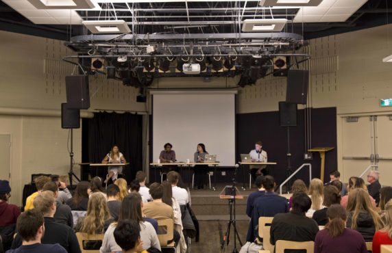 Candidates from the two slates, Engage UVic and Hear UVic, responded to questions from CFUV radio station, the Martlet, and audience members, resulting in a lively and passionate debate — a step up from the previous UVSS election, where most candidates ran unopposed. The floor of the Vertigo Lounge was split nearly down the middle between the two slates’ candidates and supporters, with tables further back full of other potential voters and students who soon realized they had picked an unfortunate location to study for their midterms.