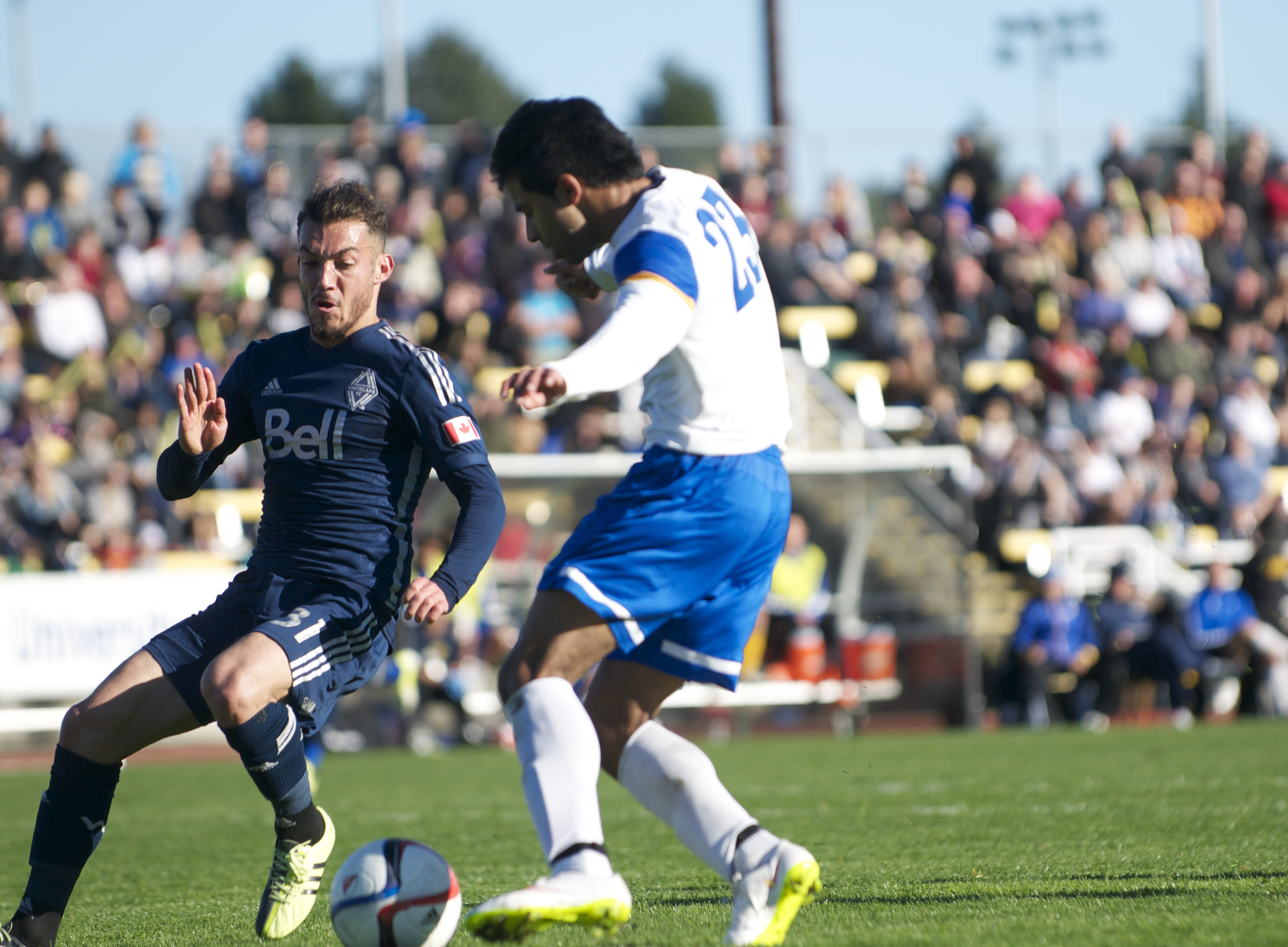 The Whitecaps were complacent in their comfortable lead and the Vikes started to garner some chances on keeper Paolo Tornaghi’s goal. One corner bounced off the Whitecaps’ bar, and Cam Stokes mis-kicked from eight yards out when it looked certain he would score. Hundal looked bright on the left side, though his best run through Vancouver’s defense ended only in a block from defender Diego Rodriguez.
