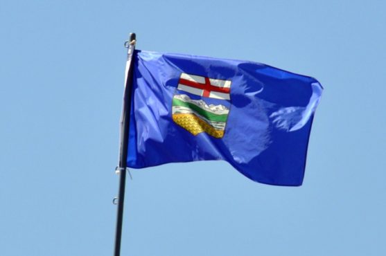 The Albertan flag, most likely extending from someone’s pick-up truck. Photo by Abdallahh via Flickr