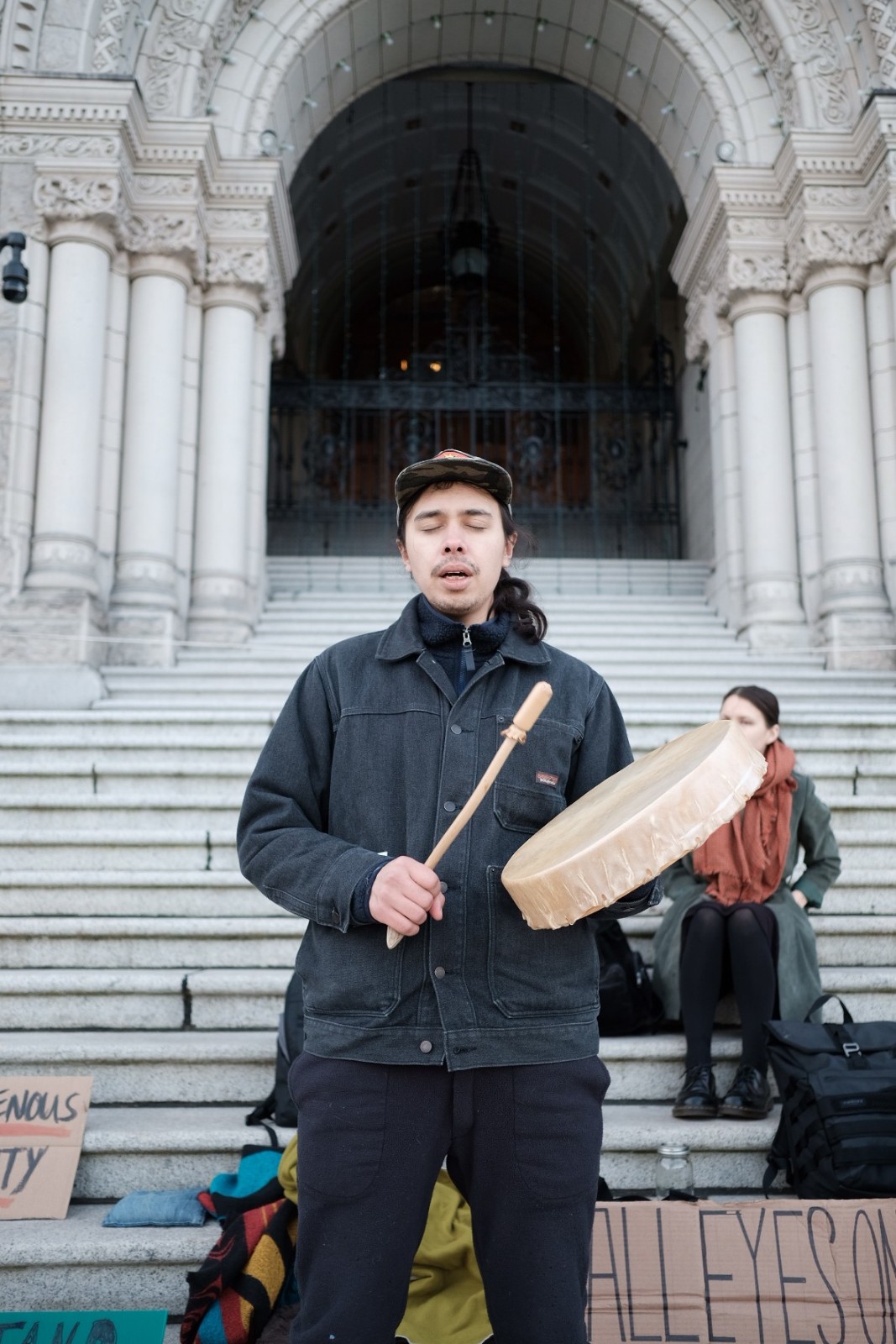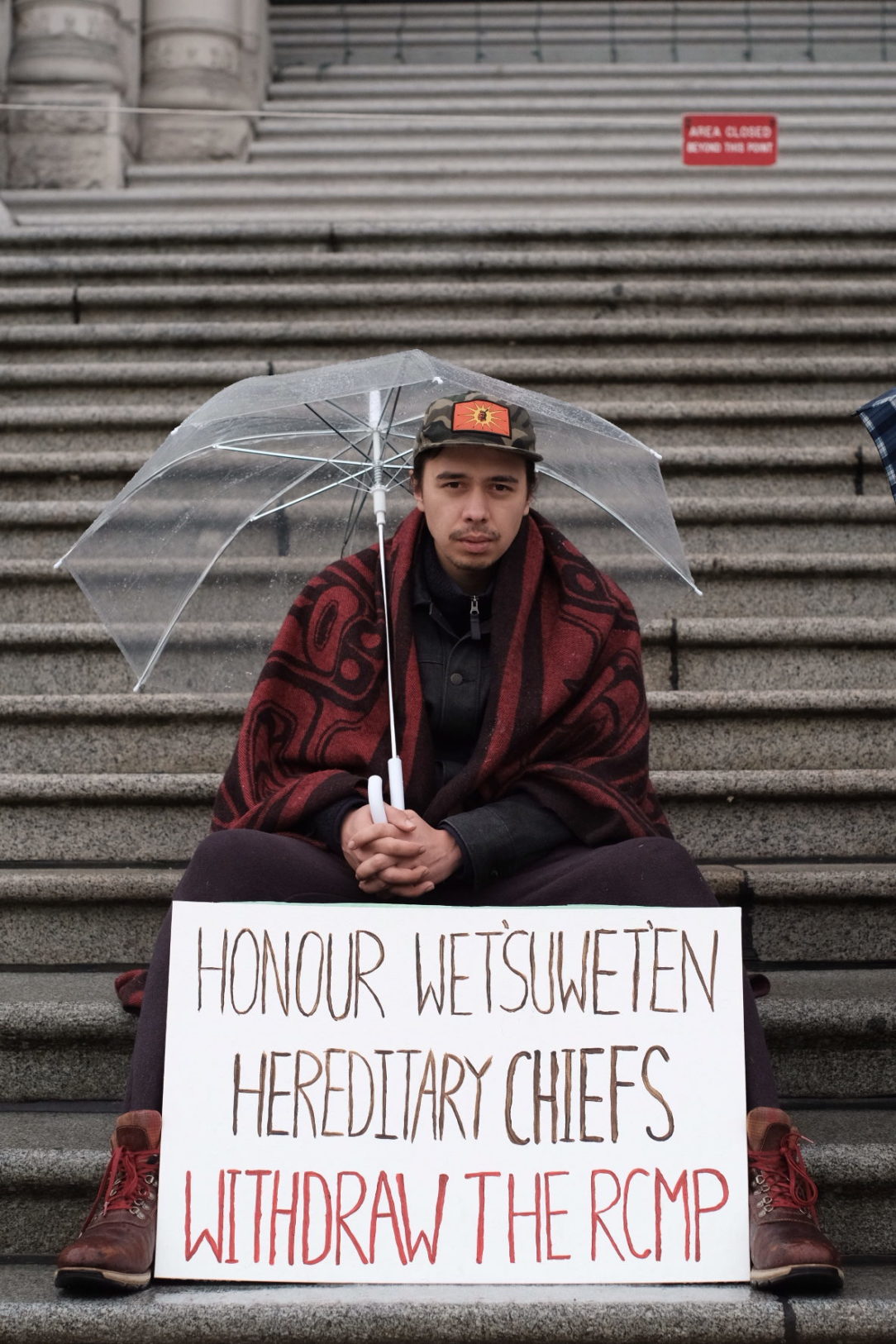 “Sitting on the steps was the least I could do, just to be a constant presence down there at the Legislature, just to be a constant reminder that what is happening is unacceptable and that B.C. has a duty to approach this nation-to-nation relationship in good faith and to not rely once again on the force of the RCMP like they did last year,” he says.