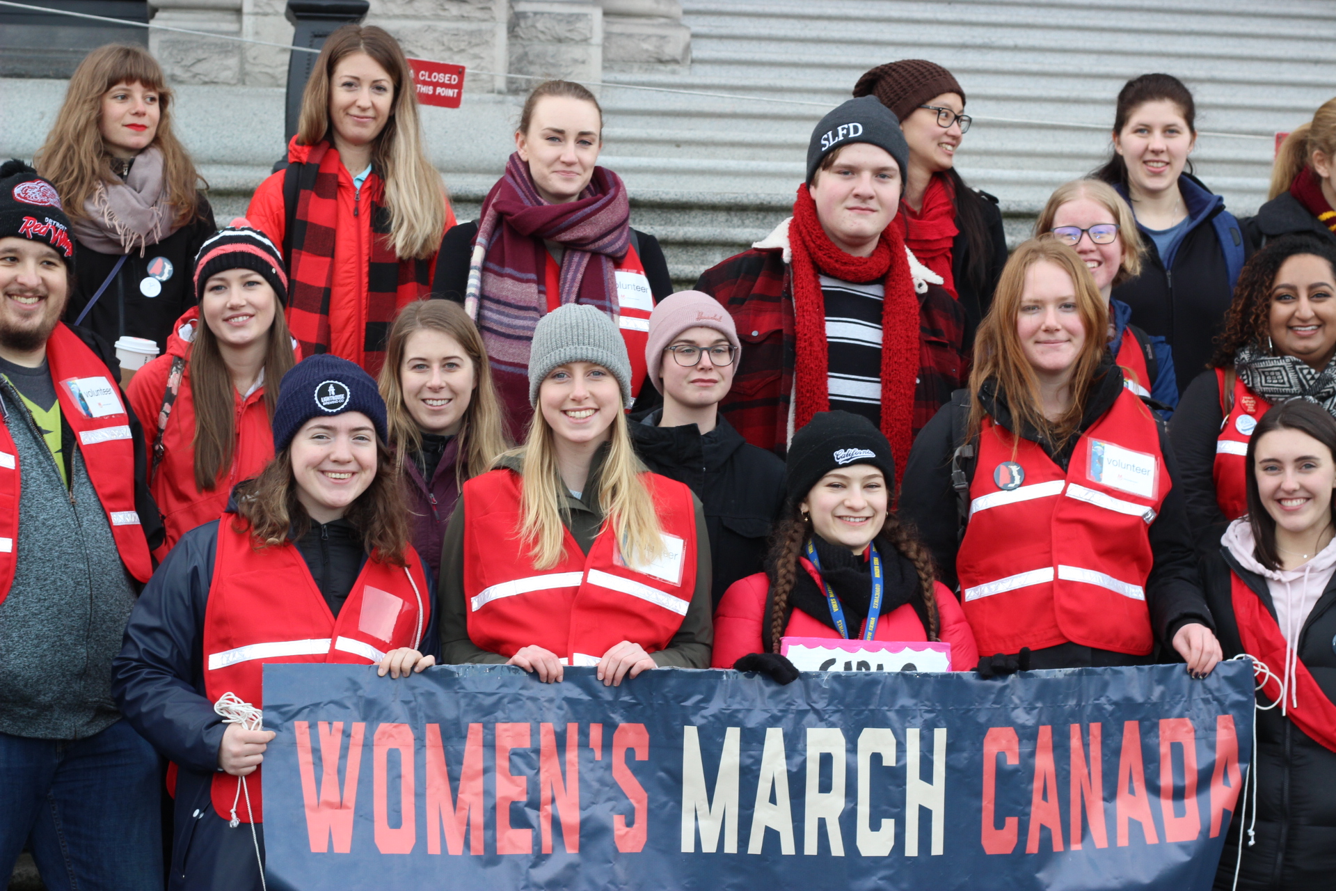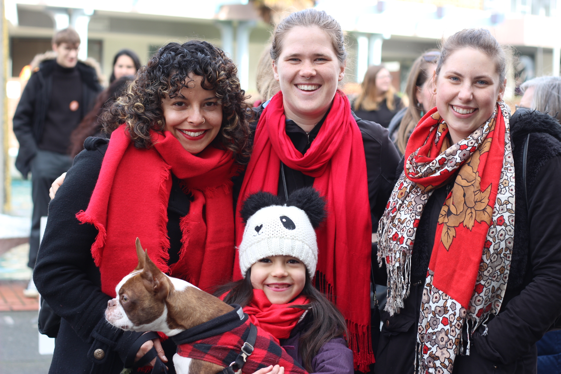 Based on a suggestion made by the Native Women’s Association of Canada, many people wore red scarves in recognition of the disproportionate violence experienced by Indigenous women and girls in Canada, who are three times as likely as other Canadian women to experience violence.